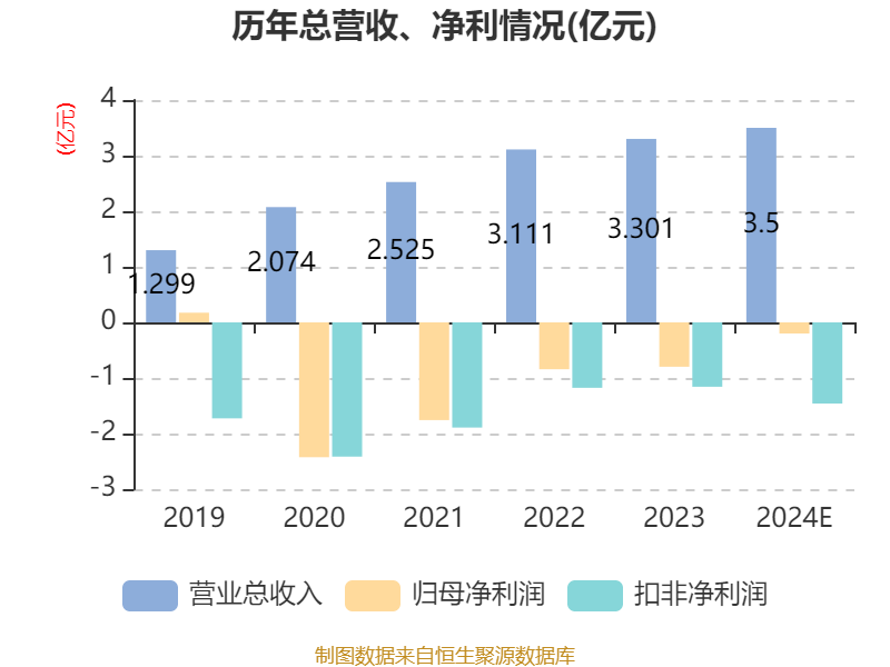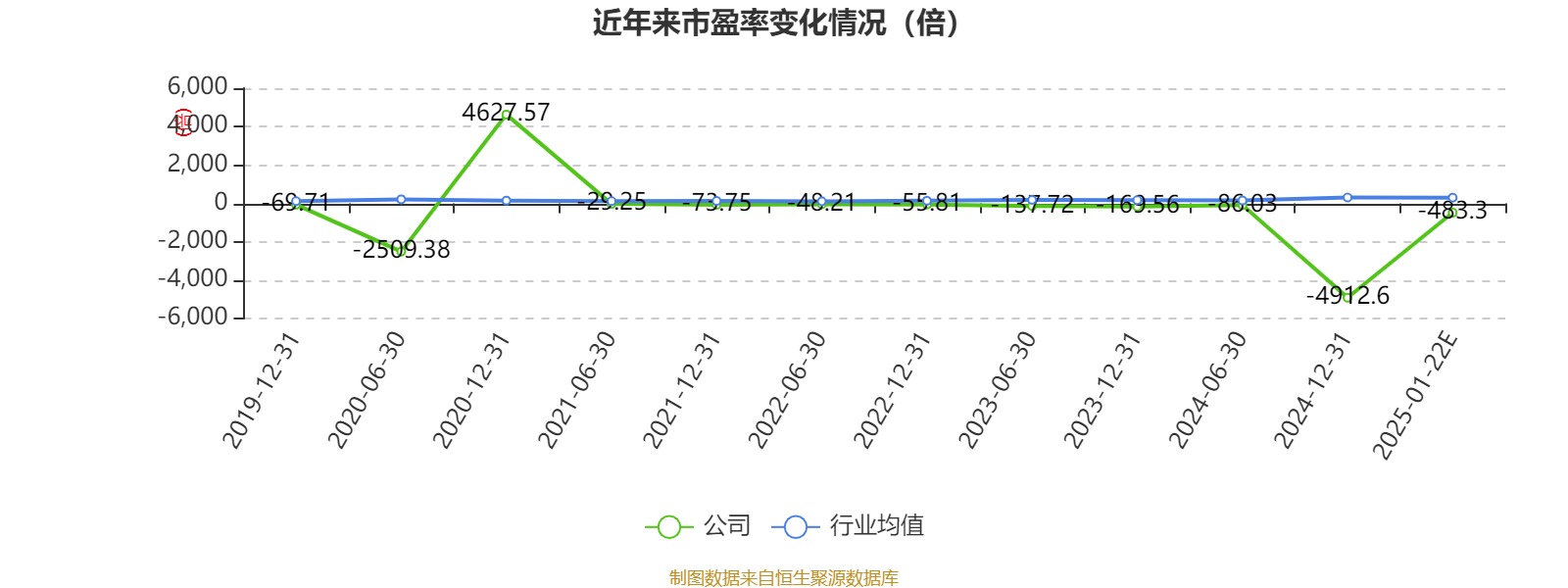 中证智能财讯国新健康(000503)1月22日晚间披露2024年度业绩预告,预计2024年实现营业收入3.5亿元,同比增长6%;归母净利润亏损2000万元,上年同期亏损7979万元;扣非净利润亏损1.46亿元,上年同期亏损1.16亿元。以1月22日收盘价计算,国新健康目前市盈率(TTM)约为-483.3倍,市净率(LF)约6.96倍,市销率(TTM)约27.62倍。